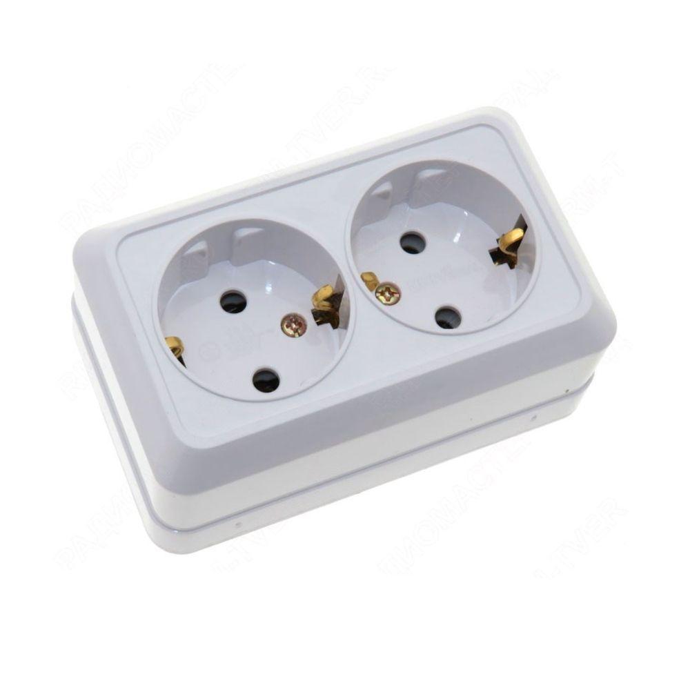 Розетка двойная 2П+3 открытой установки с/з IP20 16А 250В белая "Ладога" |